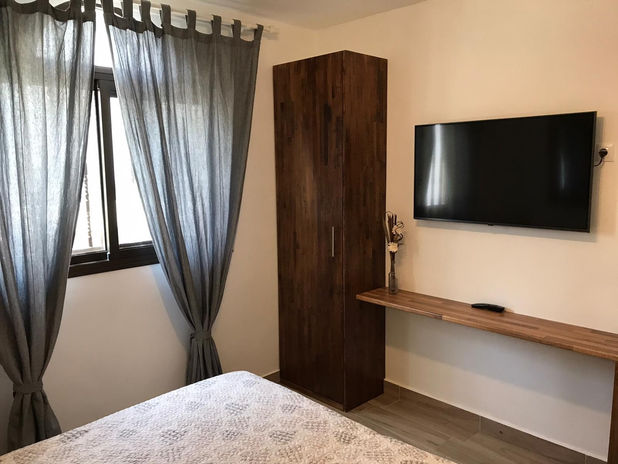 Súčasťou apartmánu je pohodlná manželská posteľ, obývacia časť na oddych, a terasa s ležadlami, ktorá ponúka dokonalý priestor na opaľovanie. Terasa je špeciálna svojím prírodným povrchom zo sopečných kameňov, čo jej dodáva originálny a miestny šarm.